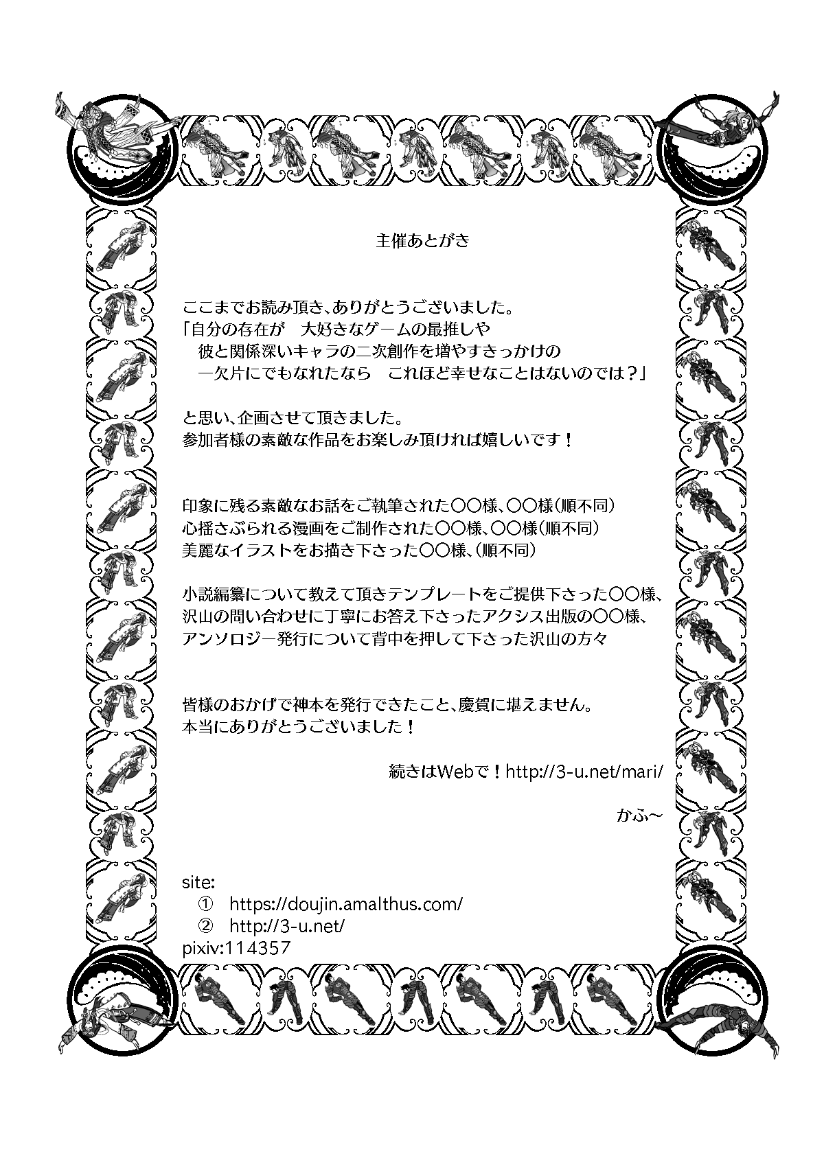 (もし主催が身罷った(=死んだ)場合は引き継げる者がおりません。生存報告として個人サイトかSNSの1ヶ月以内の更新を心がけます)
